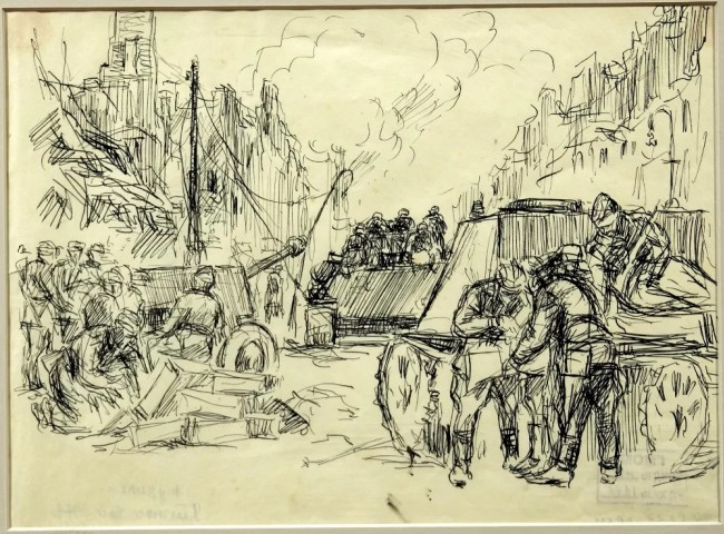 Как пишет музей во «ВКонтакте», фронтовые рисунки мастера отличаются отсутствием парадности и пафоса. В работах передана правдивая картина военных реалий: запечатлены руины, эпизоды уличных боёв и военная техника. Среди представленных произведений — рисунки «Уличные бои» (1944) и «Подбитый танк» (1945).