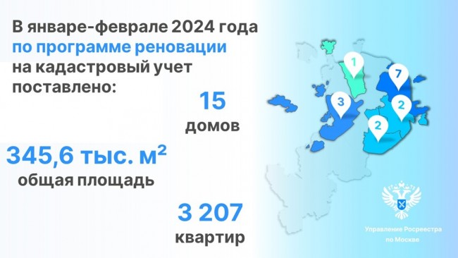 С начала 2024 года на кадастровый учет поставлено 15 домов по программе реновации жилищного фонда столицы. Об этом сообщил руководитель Управления Росреестра по Москве Игорь Майданов.