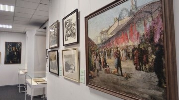 Представлены работы Аполлинария Васнецова, Василия Сурикова, Василия Верещагина, Валентина Серова и Ильи Репина.