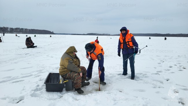 Инспекторы центра ГИМС Костромской области провели мониторинг ледовой обстановки на Костромском разливе Горьковского водохранилища. Проведенное замеры показали, что лёд уже неоднородный. Однако рыбаков это не останавливает, они рискуют жизнью ради хобби. Спасатели МЧС России побеседовали с ними, напомнили о необходимости соблюдения правил безопасности при выходе на лед, а также разъяснили, как правильно действовать провала.