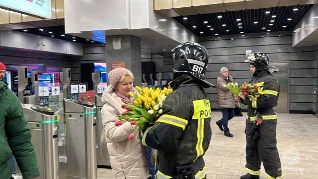 Также сегодня состоялась акция на территории ТПУ «Площадь трех вокзалов» Московского центрального диаметра. С букетами весенних тюльпанов прекрасных дам ждали сотрудники МЧС России. Под музыкальное сопровождение Показательного оркестра Главного управления МЧС России по г. Москве прекрасных женщин поздравили с праздником. «Сегодня проходит замечательная акция в преддверии 8 Марта. Мужественные, отважные, суровые мужчины, которые стоят на страже нашей безопасности, в этот день открывают свои чуткие сердца и дарят улыбки милым дамам. Поздравить женщин пришли пожарные, спасатели, кинологи и показательный оркестр МЧС с программой из популярных мотивов Российской эстрады. Главное, что нам удалось подарить в этот день радость, яркие эмоции и отличное настроение представительницам прекрасной половины человечества», - отметил директор Департамента информационной политики МЧС России Роман Охотенко.
