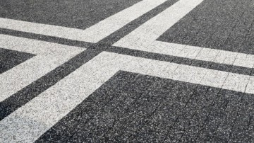 На площадке появились обозначения машино-мест, направляющие элементы и указатели движения.